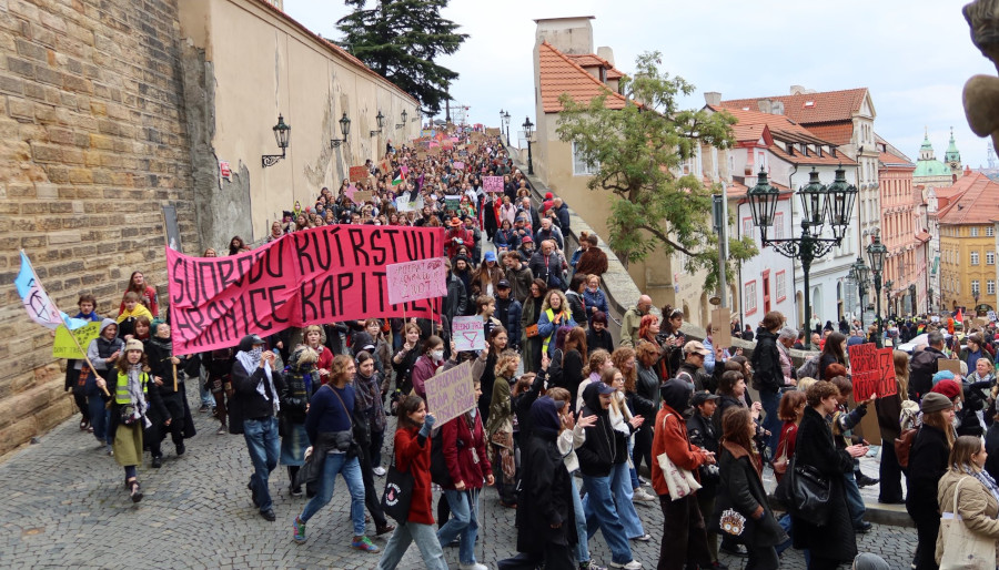 Sraz byl na Hradčanském náměstí, odkud se posléze i vycházelo. Už tam bylo jasné, že účast nebude malá – prostor byl zaplněný lidmi s transparenty či queer vlajkami. Pohled to byl krásný a z vrchu dodávky, která sloužila jako mobilní pódium pro proslovy, musel být ještě lepší. Jako první zaznělo úvodní slovo kolektivu Praha je feministická, po něm přišlx na řadu postupně zástupci a zástupkyně Měsíce reprodukční spravedlnosti, polsko-českého kolektivu Ciocia Czesia, ASAP, Amnesty International a v neposlední řadě kolektivu Sdruženy. Promluvilx o různých tématech, od (ne)dostupnosti interrupcí v České republice, přes tristní situaci žen a queer lidí v Polsku, po důležitost intersekcionálního feminismu.