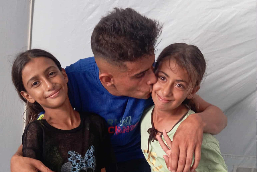 Autor se snaží rozloučit se svými sourozenky, Aseel a Janou, a to jen pět minut před svým odchodem do centra Gazy a poté do Irska. 26. srpna 2025.