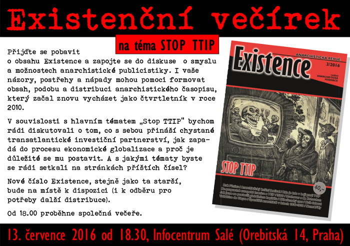 Anarchistická revue Existence zve u příležitosti vydání dalšího čísla na Existenční večírek v infocentru Salé.