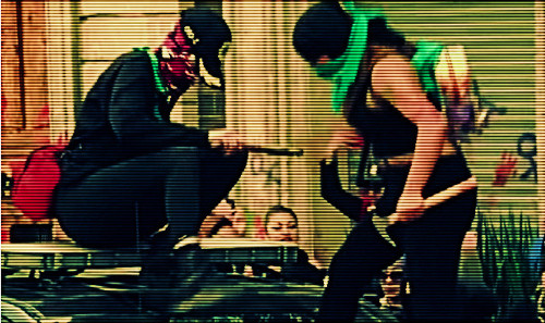 Na Náměstí ústavy byla zdemolována vládní limuzína a hasičský vůz. Vedle byl převrácen a pomalován mikrobus. Brána Národního paláce, sídla mexického prezidenta, byla polita červenou barvou a zasypána molotovy. Kousek dál byl rozdělán táborák z krámů získaných ze státem sponzorovaného „feministického“ koncertu. Kolem táboráku tančily šťastné a revolučně naladěné ženy. Místo obrovské státní vlajky na stožáru uprostřed náměstí zaujal černý prapor odporu.