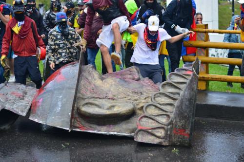 Před pár dny jsme informovali o ničení symbolů kolonizace v Kanadě, kde k těmto aktům dochází po odhalení rozsáhlých masových hrobů coby jednoho z důsledků katolizace dětí původních obyvatel. Kolonizační moci však nešlo jen o znásilnění duší (a někdy i těl) dětí, ale hlavě o kořistnické zabírání půdy kvůli generování kapitalistických zisků, jak výstižně popisuje text filmaře a lidskoprávního aktivisty Brada McGregora. Symboly kolonialismu, genocidy a zotročení padají i na druhém americkém kontinentu, konkrétně v Kolumbii.
