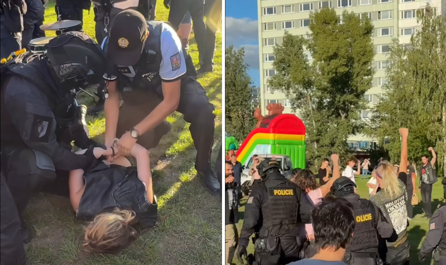 Hlasitá produkce nejenže narušila Okamurův proslov, ale vydráždila k akci i přítomné policejní příslušnictvo. To se jalo odpůrce a odpůrkyně putinovské okupace, xenofobie a fašizace společnosti perlustrovat. Několik lidí účastnících se happeningu bylo policií zadrženo. Čistou grotesku pak představovalo zabavení hudebních nástrojů a pečlivé vyfocení každého kousku, jejich zabalení do speciálních fólií a následná eskorta do útrob policejní instituce. Přihlížející se tak mohlx jen dohadovat, zda šlo o zneškodnění nebezpečných zbraní z rukou potenciálních hudebních teroristů.