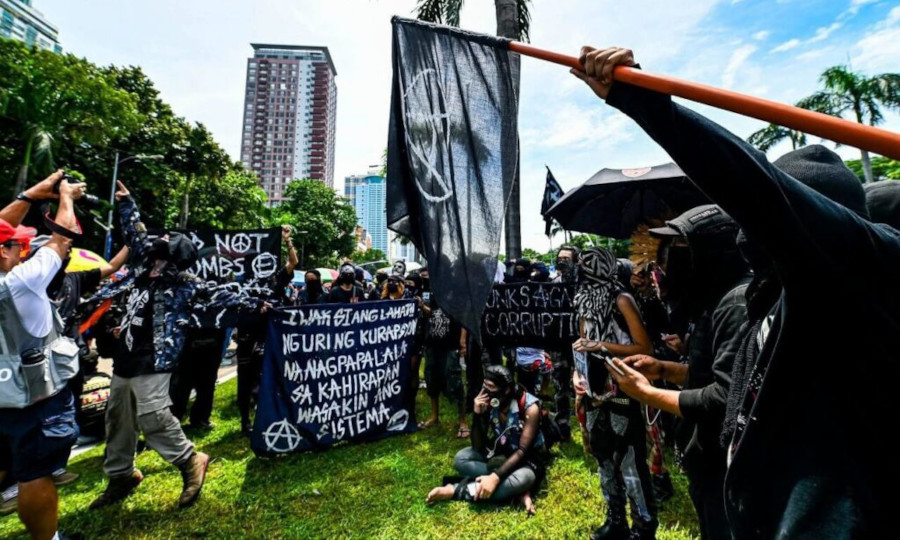 Filipínští anarchisté během protestů proti korupci ve vládě