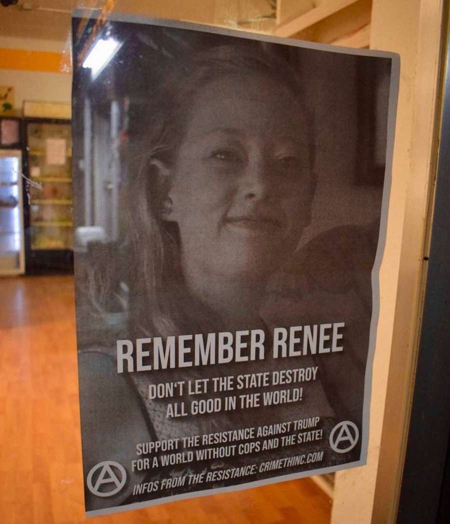 „Vzpomínejte na Renee – nenechte stát zničit vše dobré na světě.“ Plakát na památku Renee Good, který byl k vidění v Německu.
